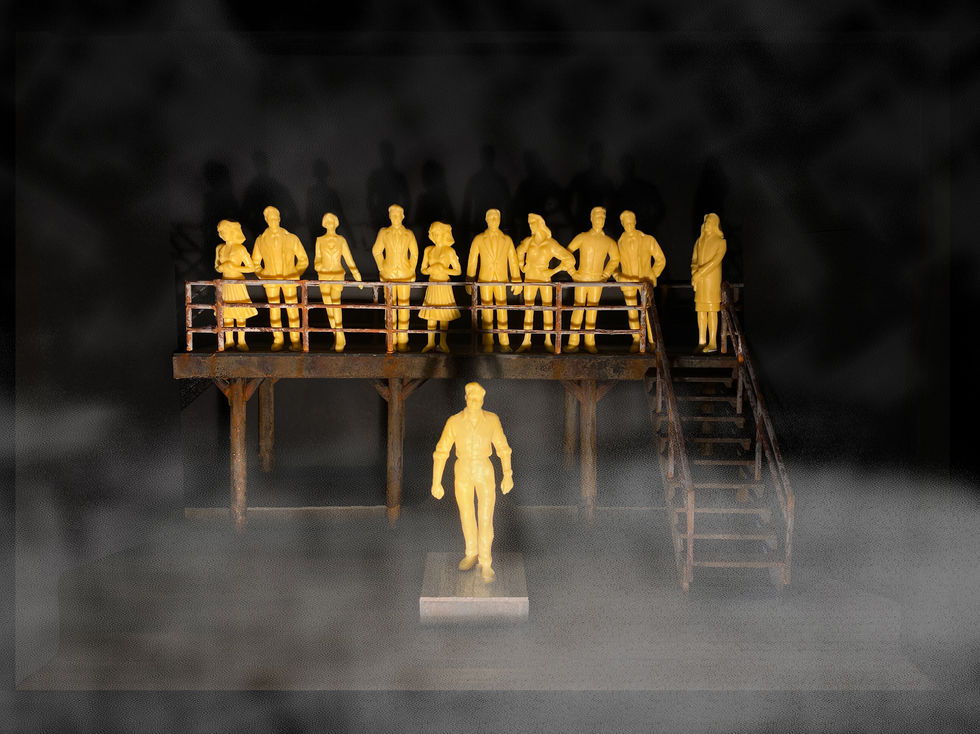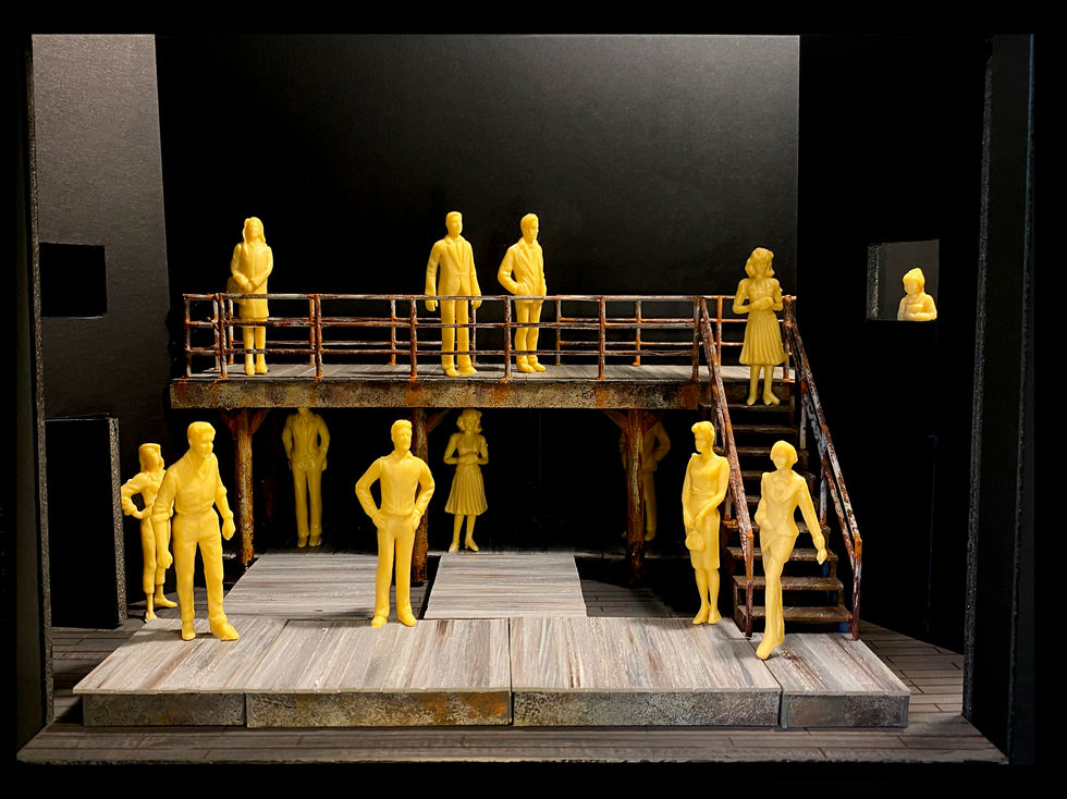 Trucks are pushed into new configurations by the chorus to create new locations. Whether they argue as they struggle or flirt with another character’s partner, these interactions characterise the minor figures to emphasise that the crowd is after all a collection of individuals- each at their exercise, whilst framing the moving of trucks as the boroughs trade. These scene changes enrich the story as opposed to halting it.